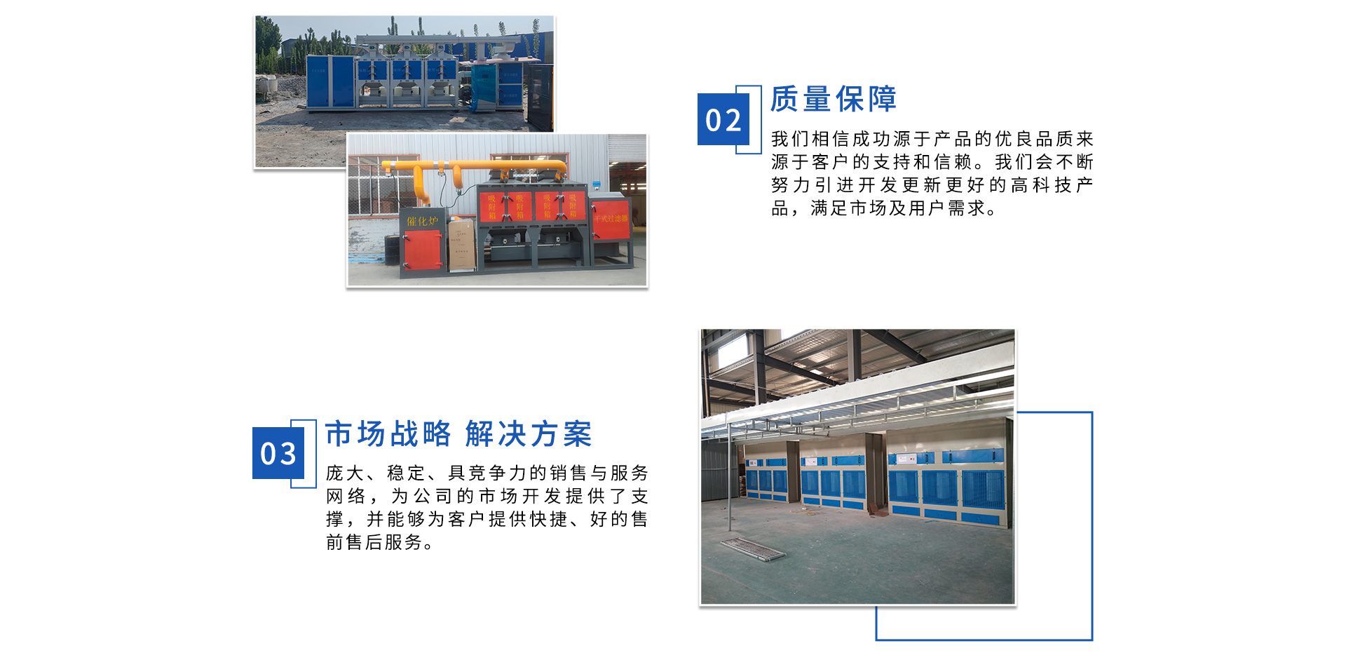 公司自成立以來(lái),始終專注于工業(yè)廢氣、污水、粉塵等環(huán)境污染的治理,先后研發(fā)出催化燃燒設(shè)備、光氧催化廢氣處理設(shè)備、低溫等離子廢氣處理設(shè)備、粉塵處理-體化設(shè)備等一系列環(huán)保設(shè)備,產(chǎn)品先后通過(guò)ISO901質(zhì)量管理體系認(rèn)證、中國(guó)環(huán)境保護(hù)產(chǎn)品認(rèn)證。